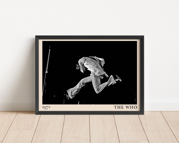 The Who were rock and roll at its most dangerous and most brilliant. Pete Townshend's windmill guitar, Roger Daltrey's microphone-swinging swagger, Keith Moon's anarchic drumming, and John Entwistle's thundering bass they were four forces of nature. My Generation, Won't Get Fooled Again, Baba O'Riley, Tommy, Quadrophenia, they didn't just write songs, they built worlds. Our vintage photography captures The Who's explosive live energy on enhanced matte art paper. Statement wall art for living rooms and man caves, or a knockout gift for any rock fan.
